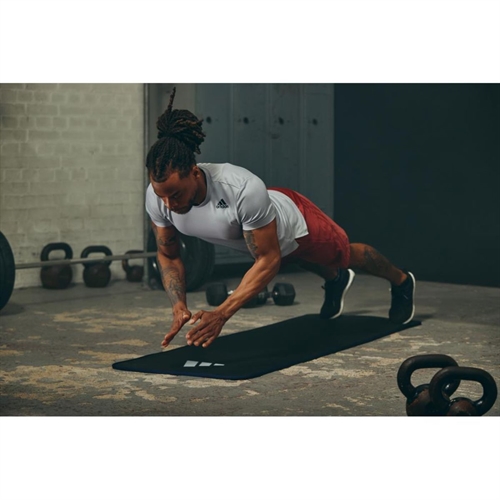 Adidas 10 mm Träningsmatta är en bekväm och stabil träningsmatta, utvecklad för effektiv golvträning med fokus på stöd, grepp och hållbarhet. Den svarta och blå färgkombinationen ger ett klassiskt och lugnt uttryck som passar perfekt både för hemmaträning och gym.