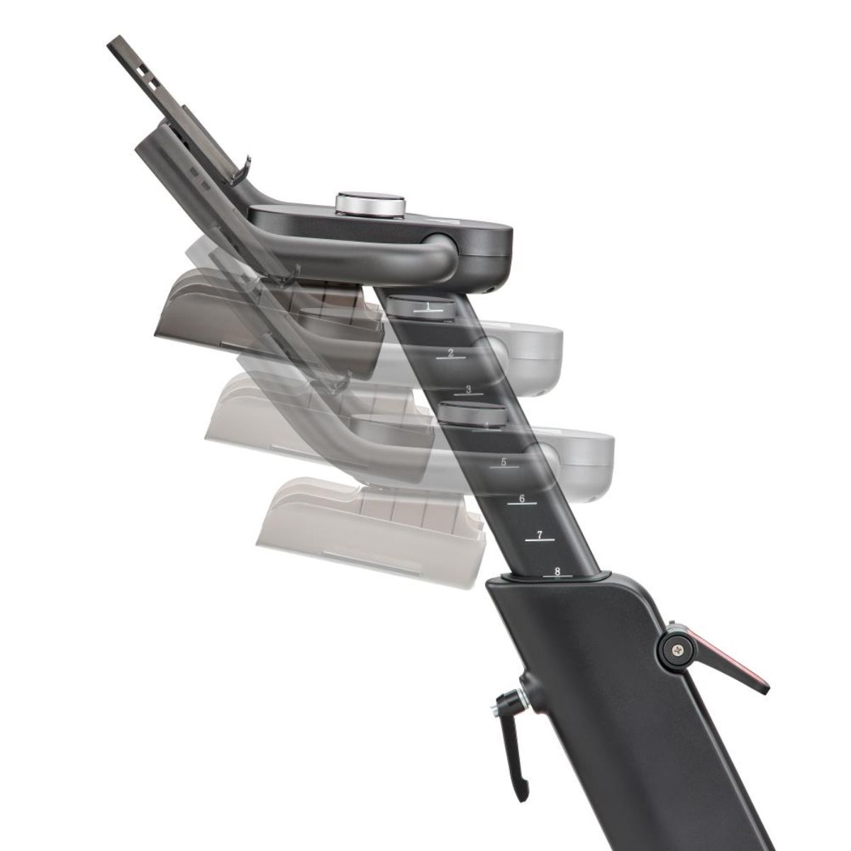 Den justerbara surfplattehållaren ger optimal betraktningsvinkel för träningsappar och klasser, medan flaskhållarna håller dig hydrerad.