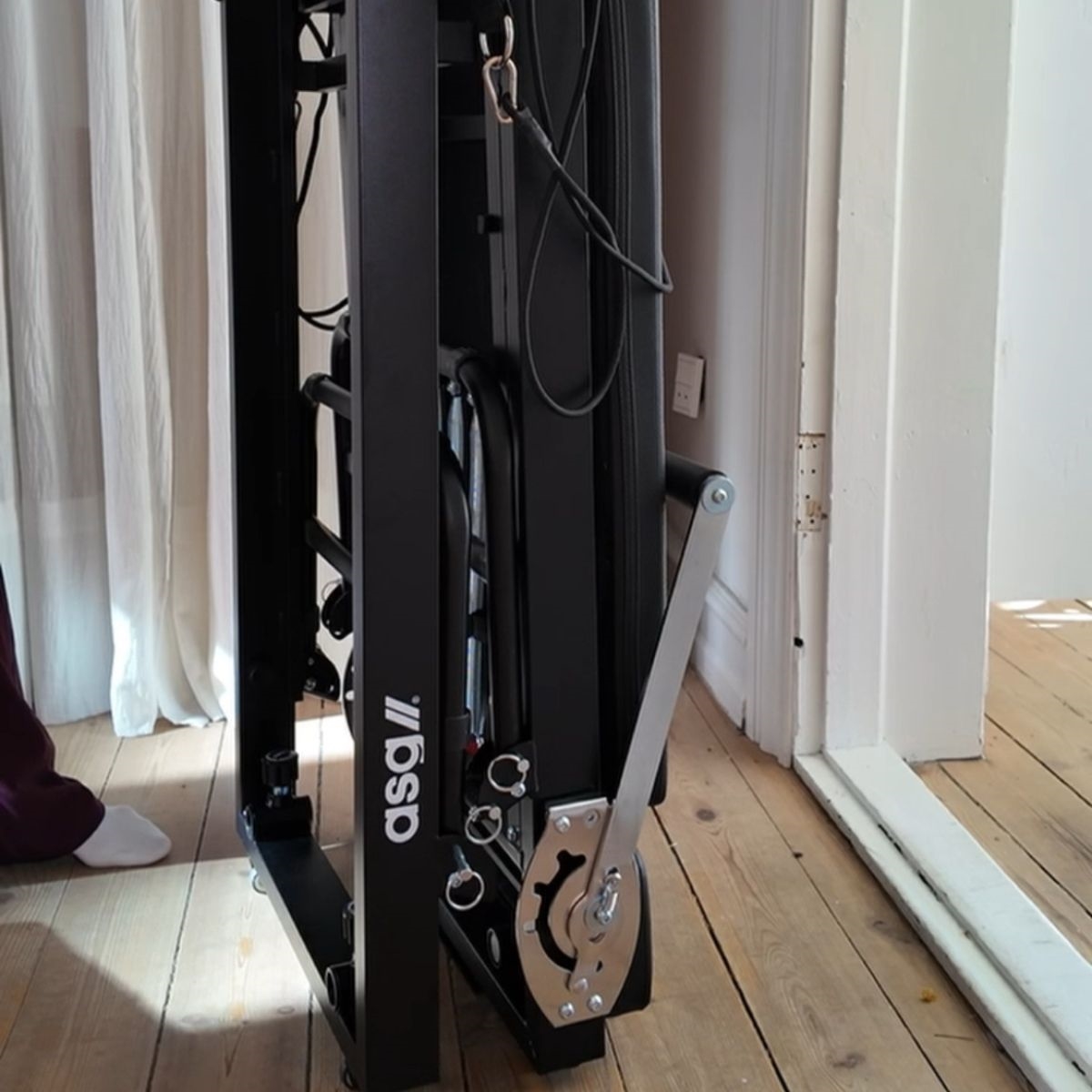 ASG 4430 Foldbar Alu Pilates Reformer tar god och robust kvalitet till ditt vardagsrum med ledskånande träning och ett platsbesparande design. Den är perfekt för dig som vill ha effektiv pilatesträning hemma. Köp din reformer maskine idag och upplev en ny sätt att träna på!