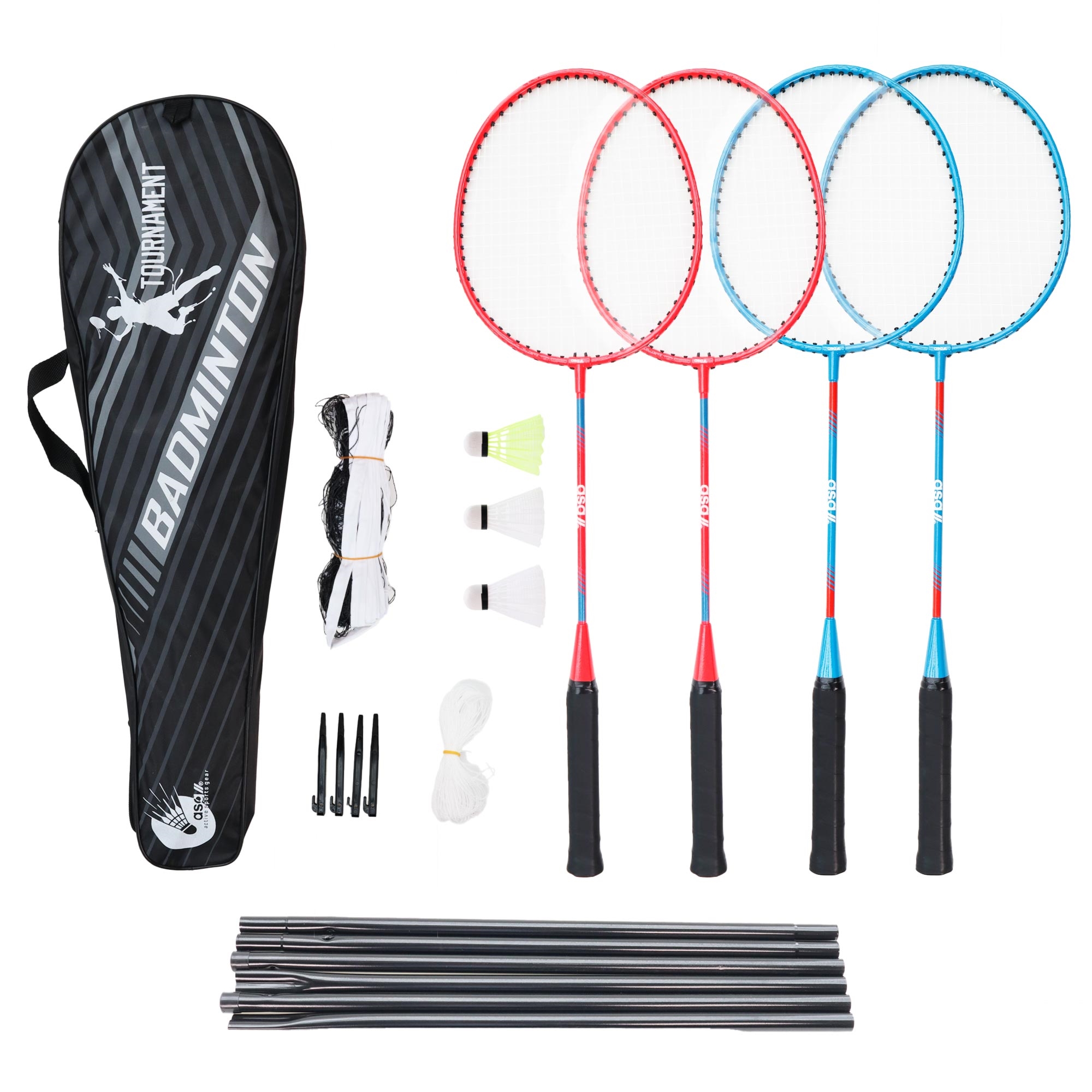 Med 4 lätta och hållbara racketar, 3 fjäderbollar, ett nät och en praktisk väska för förvaring och transport kan hela familjen eller kompisgänget vara med. Perfekt att ta med på semestern, till sommarstugan eller på picknick!