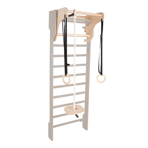 Den extra höjden, den robusta konstruktionen och möjligheten att lägga till tillbehör gör denna ribbstol till ett komplett träningsredskap för hela familjen. En stilren, hållbar och flexibel lösning för hemmet.