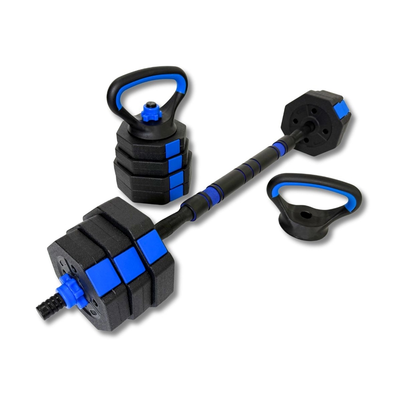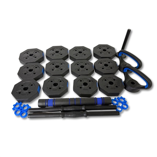 ASG Justerbart Viktsats 20 kg – Blå ger dig maximal träningsfrihet i en kompakt lösning. Med detta 3-i-1-sats kan du träna precis som du vill – med hantlar, skivstång eller kettlebell. Perfekt för varierad träning hemma där både plats och mångsidighet spelar roll.