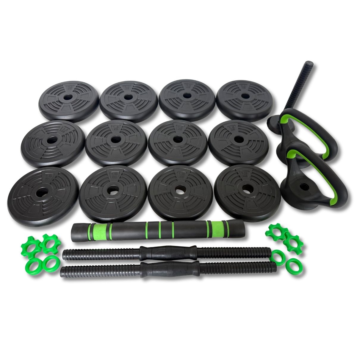 ASG Justerbart Viktset – Svart/Svart ger dig ett snyggt och mångsidigt set för effektiv hemmaträning. Setet finns i 15 kg och 20 kg, så att du kan välja den viktklass som matchar dina behov. Med justerbara viktplattor kan du enkelt justera belastningen under träningen, och den solida designen säkerställer god stabilitet och komfort. Perfekt för både nybörjare och avancerade användare som vill ha ett enkelt och funktionellt viktset för många olika övningar.