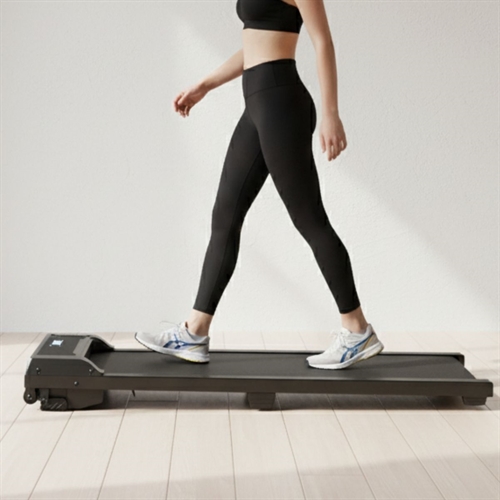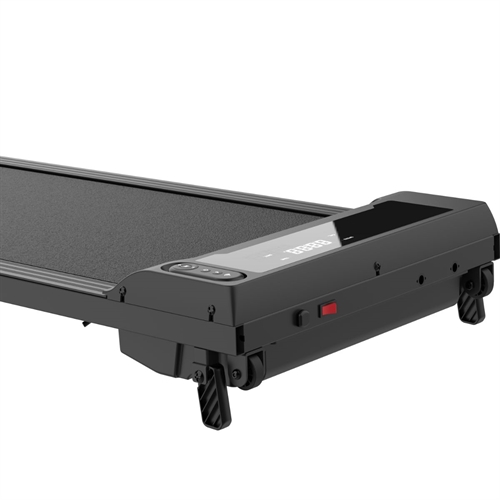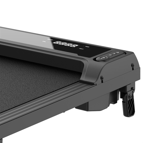 Gångbandet styrs enkelt med fjärrkontroll och har 6 förinställda program som gör det lätt att komma igång. LED-displayen visar hastighet, tid, distans och kalorier – så att du kan hålla koll på din träning. Designen är kompakt och låg (endast 10,8 cm hög), vilket gör att den lätt kan förvaras under sängen eller soffan efter användning.