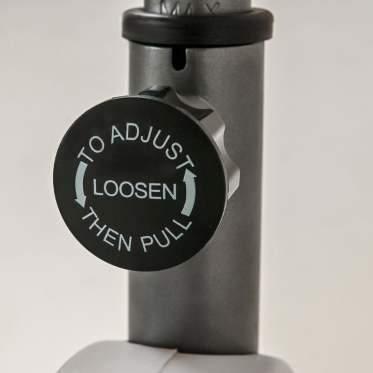 Sadel med både horisontell och vertikal justering – samt vinklingsbart styre.