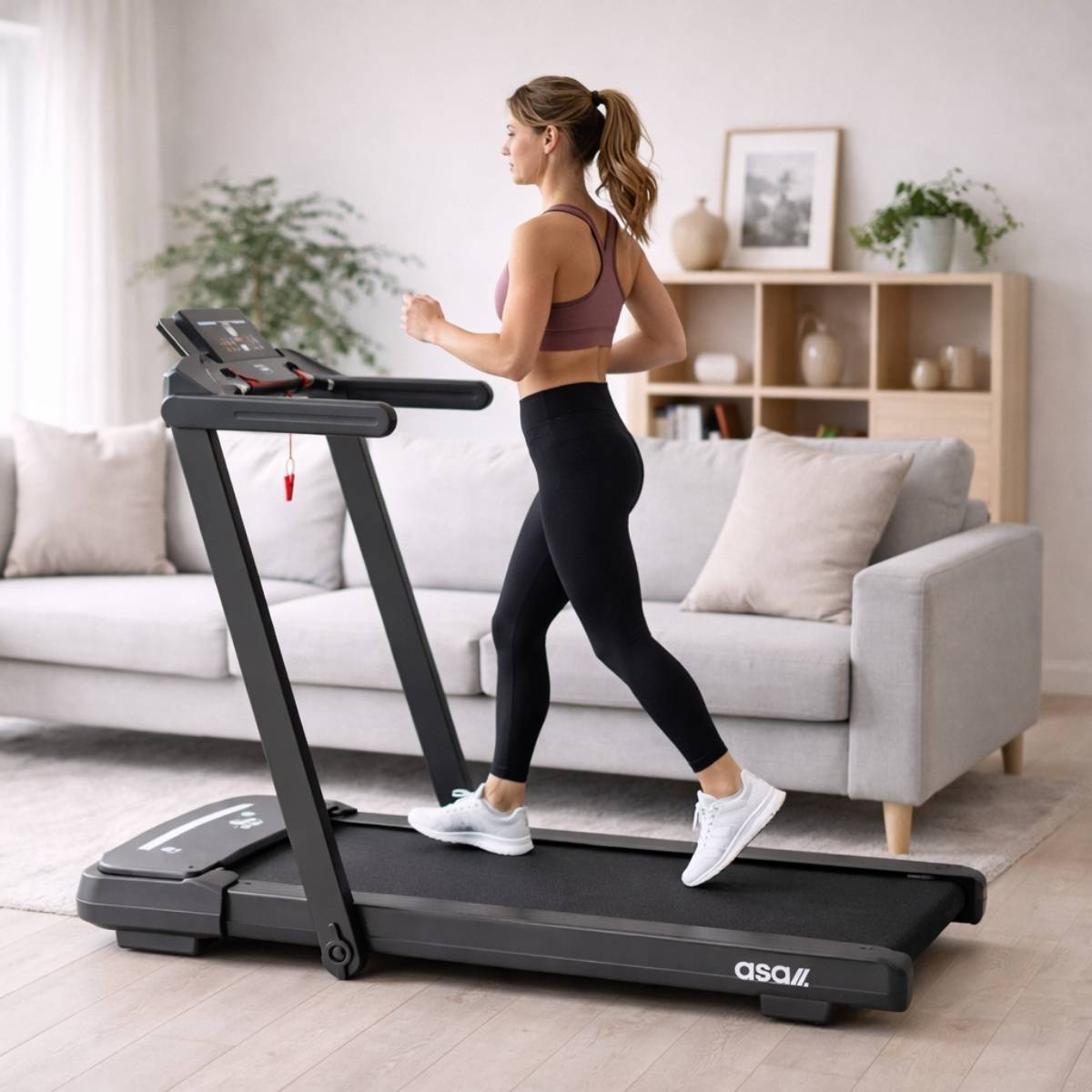hopfällbart löpband är perfekt om du bor litet – det kan enkelt fällas ihop och förvaras under sängen eller mot väggen.