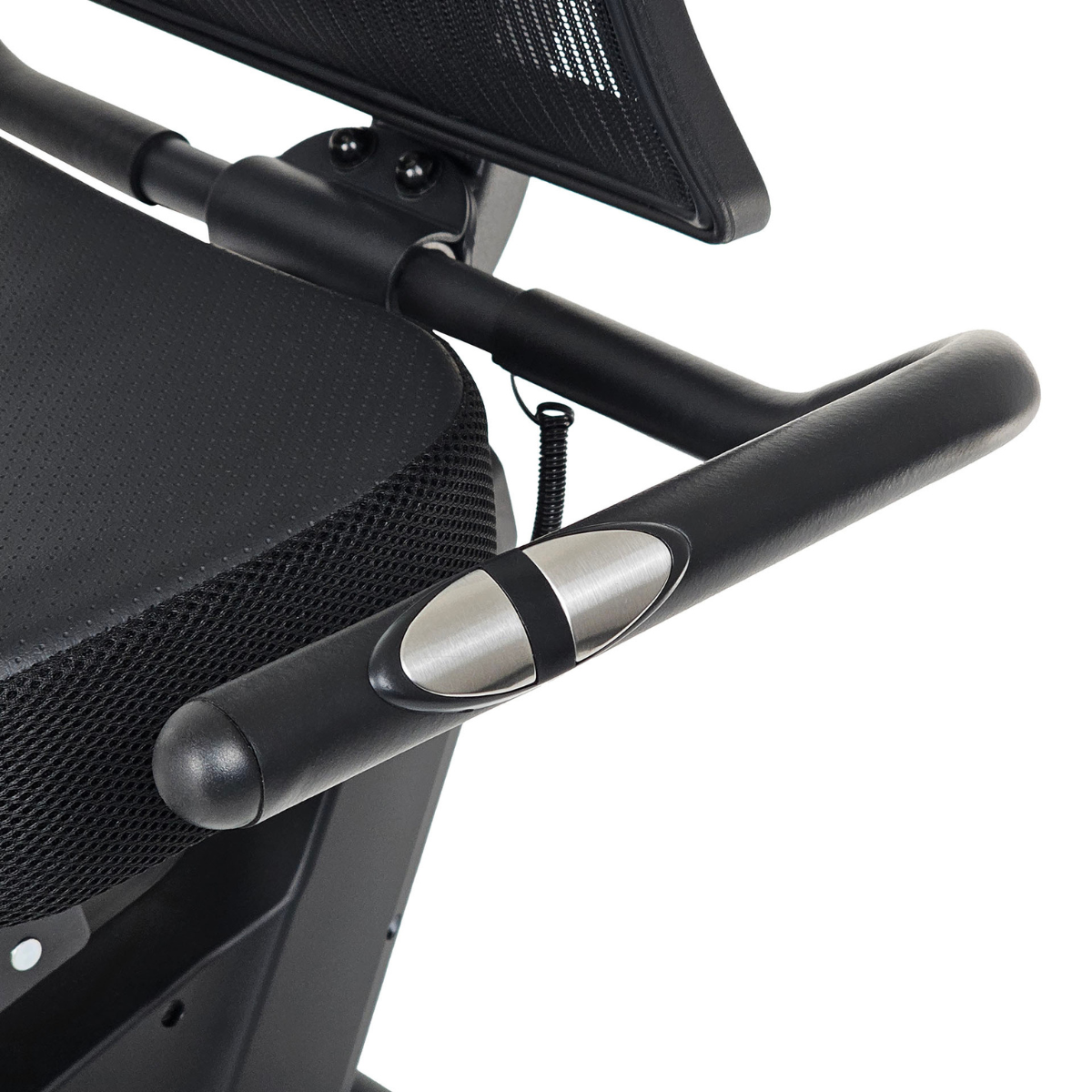 Det ventilerande mesh-ryggstödet ger bra stöd och en avslappnad, ergonomisk sittställning. Stödhantaget ger extra säkerhet vid av- och påstigning.