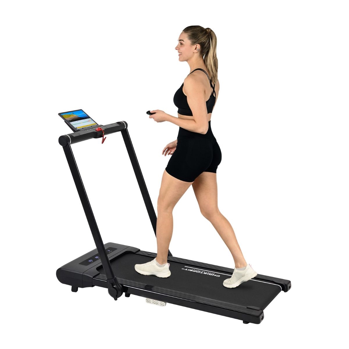 Använd som walking pad med handtaget nedfällt eller som klassiskt löpband med handtaget uppfällt.