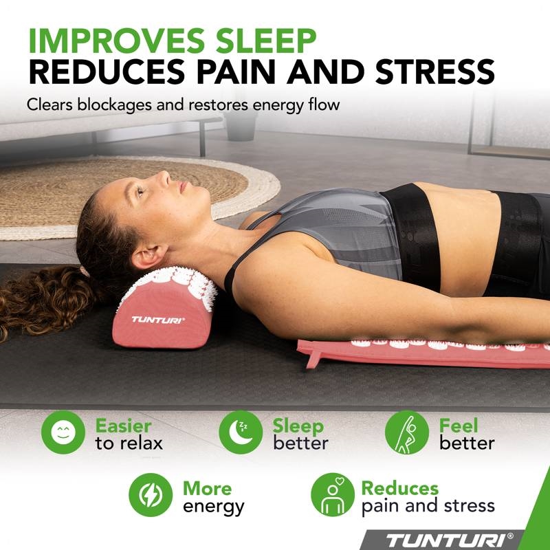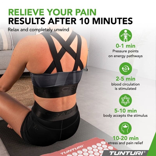 Rehabilitering › Massage › Kroppsmassage SPARA 100,- ‹ › Tunturi Akupressurmatta med kudde – Rose Gold ✔️ Aktiverar endorfinproduktionen ✔️ Effektiv på kort tid ✔️ Minskar smärta och stress 1 st.399,00299,00 Kr. pr. st. Tunturi Välj Färg: I lager Rekommenderade tillbehör disse produkter? Tunturi NBR Träningsmatta 1,5 cm - Rose Gold Kr. 299,00Kr. 399,00 Tunturi 8 mm Yogamatta – Rose Gold Kr. 279,00Kr. 349,00 Tunturi Foam Roller 33cm - Rose Gold Kr. 249,00Kr. 299,00 Antal Lägg i kundvagn Beskrivning Specifikationer Guider/Vägledningar Video Recensioner Tunturi Akupressurmatta med kudde – Rose Gold Tänk dig en avslappningsupplevelse med så många som 8 000 tryckpunkter utspridda över både mattan och kudden. Detta är din nyckel till djup avslappning och lycka på bara 10 minuter dagligen: ✔ Aktiverar endorfinproduktionen: 8 000 tryckpunkter stimulerar din kropp att frigöra endorfiner. Naturlig smärtlindring och stressreducering för en djup känsla av välbefinnande. ✔ Effektiv på kort tid: Resultat inom 10 minuter dagligen. Maximal effekt uppnås vid 15–30 minuters daglig användning. ✔ Minskar smärta och stress: Lindrar muskelsmärta, kronisk smärta, huvudvärk och mensvärk. Minskar stress, rastlöshet och ångest. ✔ Förbättrar blodcirkulationen och sömnkvaliteten: Stimulerar tryckpunkter för ökad blodcirkulation. Ökar energinivåerna och förbättrar sömnkvaliteten. ✔ Specifikationer: Mattans mått: L 68 x B 42 x H 2 cm Kuddens mått: L 37 x B 15 x H 10 cm Mattans vikt: 380 gram Kuddens vikt: 160 gram Artikelnummer14TUSYO094ROSE-ONE SIZE Skriv en recension