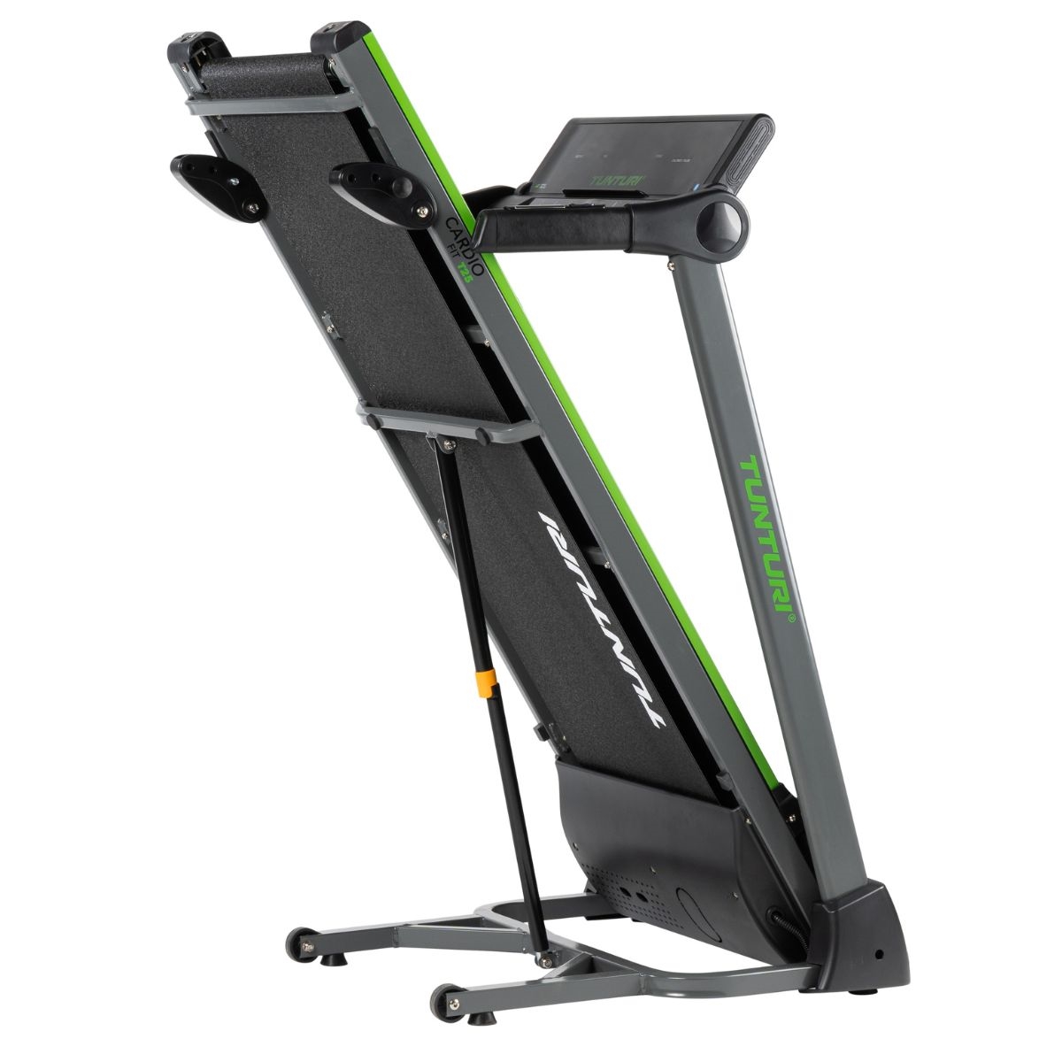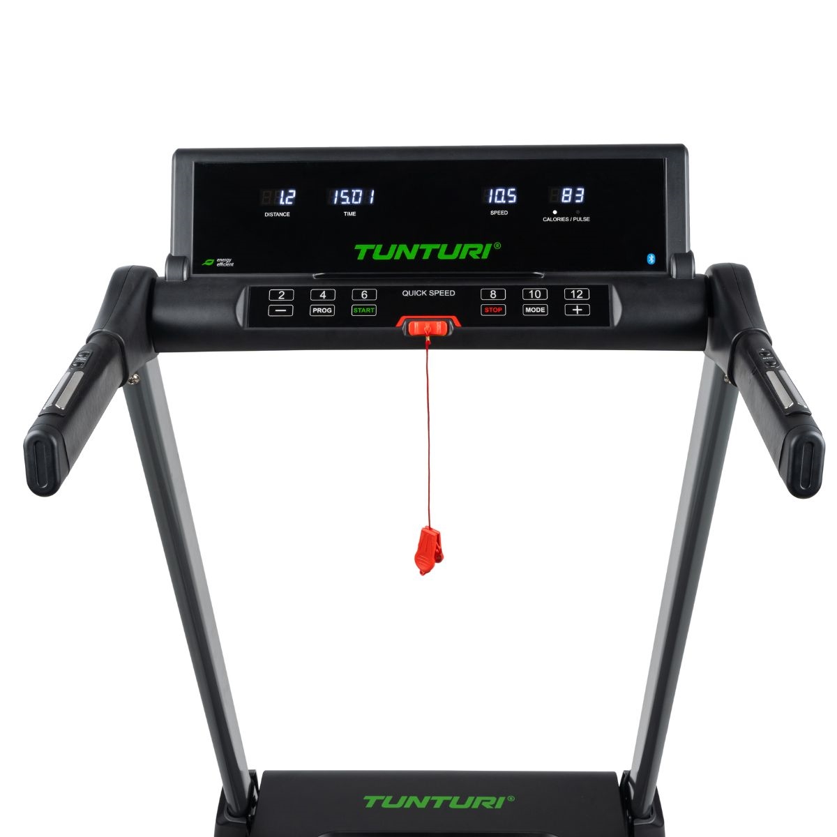 Tunturi Cardio Fit T25 är ett mångsidigt löpband för dig som vill träna effektivt hemma utan att det tar upp för mycket plats. Med en topphastighet på 14 km/h, 19 träningsprogram och 3 manuella lutningsnivåer får du gott om möjligheter för allt från promenader och jogging till mer utmanande löpning. Löpbandet är kompakt, lättanvänt och enkelt att fälla ihop – perfekt för modern hemmaträning. Den justerbara LED-displayen visar alla viktiga träningsdata, och Bluetooth gör det möjligt att ansluta löpbandet till populära träningsappar som Tunturi Routes och Zwift.