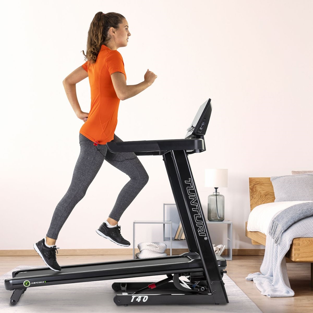 T40 är utvecklad för dig som vill ha ett löpband med professionell träningskvalitet och maximal användarvänlighet. Den elektroniska lutningen, det stora urvalet av program och den tystgående motorn ger en mångsidig och behaglig träningsupplevelse. Displayen med avståndsvisning per 10 meter gör T40 särskilt lämplig för rehabilitering. Och med integrationen till Zwift och Tunturi Routes får du perfekt motivation, variation och tillgång till virtuella löprundor över hela världen. Designen är ergonomisk, robust och hopfällbar – en idealisk lösning när premiumutrustning ska passa in i hemmet.