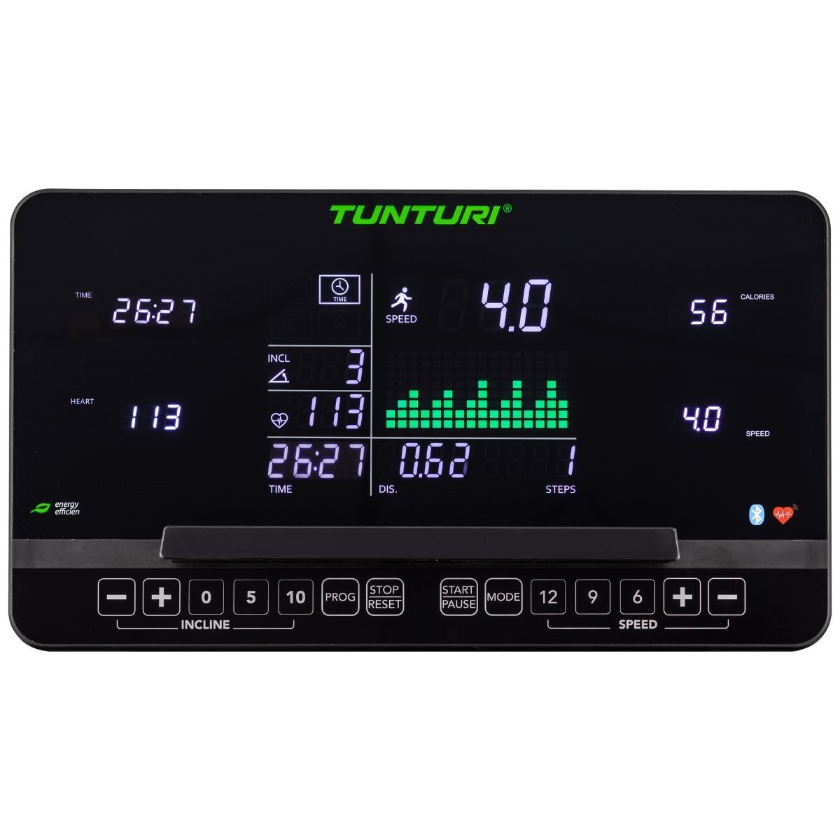 Tunturi Signature T40 är ett kraftfullt och genomtänkt löpband för dig som vill ha maximal komfort, avancerade funktioner och en naturtrogen löpupplevelse hemma. Med 47 träningsprogram, elektronisk lutning och möjlighet att springa interaktiva rutter via Tunturi Routes och Zwift får du en maskin som håller motivationen på topp – varje gång. T40 kan fällas upp på några sekunder, går extremt tyst och har en ergonomisk löpyta med Diamond anti-slip-beläggning som ger ett säkert och stabilt frånskjut på alla hastigheter.