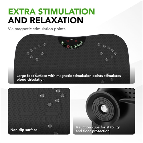 Integrerade magnetpunkter i fotytan stimulerar fötterna och bidrar till ökad avslappning och cirkulation.