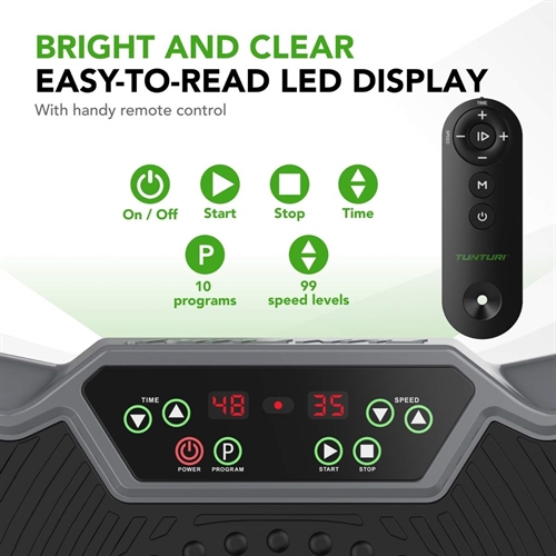 Ger full kontroll över träningsintensiteten – från mild aktivering till mer krävande vibrationsträning.